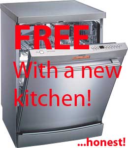 But even if you’re still being swayed by the lure of a seemingly free appliance, usually a dishwasher, then think about this for a moment please, the kitchen company had to pay for that appliance, if it were you what would you give away for free, a decent product or the cheapest one you could lay your hands on? Not much thinking required really is there?