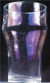 Iridescence is the rainbow effect seen on glasses when they are held up to light. The various colours may be mainly brown, blue or cover a range of the spectrum.