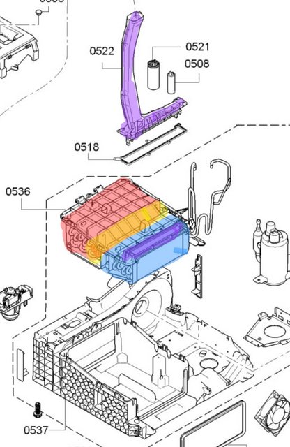 -Full strip down and inspection of the machines interior. Vacuumed lots of dust out of it. However, the compartment containing the condenser was very clean. Minimal amount of lint removed from evaporator and heat exchanger.