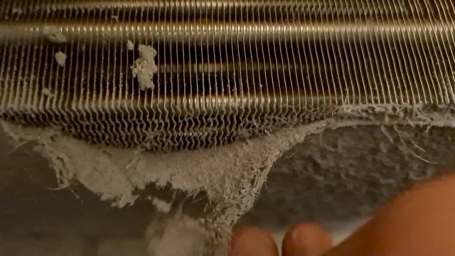 It’s very noticeable when this is starting to happen. Drying times take hours, the drum gets hot and humid, you may see condensation on the window even and fluff will build up at the bottom of the door in cycle (even with a clean filter). The air is being effectively blocked from freely flowing through the unit and everything just heats up. Even any water under the exchanger that hasn’t drained yet gets warm, creates more humidity and compounds the problem.