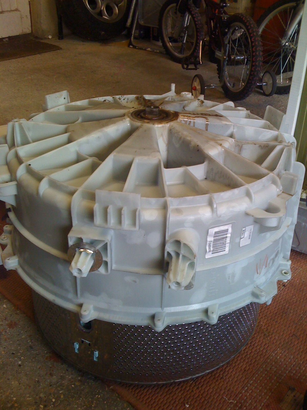 Sweet, worked a treat, the drums are now separated. Just got to work out how to get the 2 old bearings out of the nylon tub.