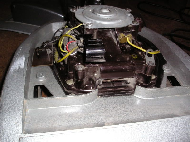 I did some repairs on this Hoover 912 a few years ago but it came back last week. This time it was only a minor problem, an internal break in the mains cable where it enters the handle. The cable protector had perished and gone floppy so I found a suitable replacement off a more modern vacuum. I have some spares for older machines recently acquired from Bill Ellis who has retired. I knew there were a few armatures so I checked and found one to fit. The winding pattern is different but it is obviously the same size etc so I fitted it and it works fine. I can’t charge the customer for the armature but thought it was better to use it than it just eventually getting binned. I got a new 25 watt pygmy bulb and the machine is almost ready to go back. The only thing I have to sort now is the On/Off switch. There is nothing to positively position the switch in the handle but if not precisely square with the hole in the escutcheon there is not enough throw and it fails to switch off. I will need to put packing behind the switch to force it hard against the escutcheon. I don’t know how old the machine is but this model was introduced in 1950.