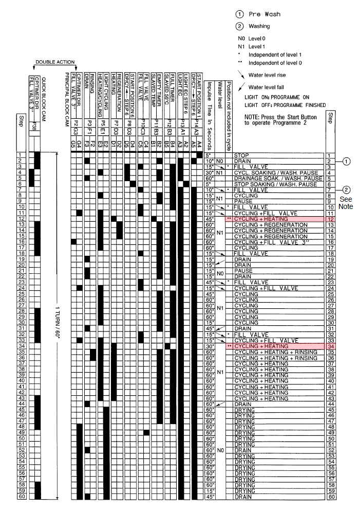 1. When it hits program 12 and 34 (see chart on previous page – both these stages are when the heater is turned on) power to the motor of the timer unit is cut and sticks on that cycle.