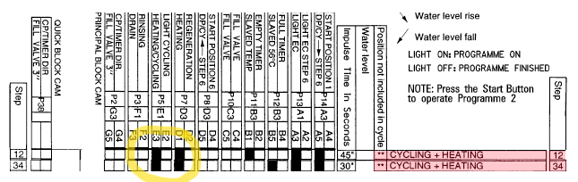 I did a test, after cleaning out and it all heated well, but still the same problem persists with the timer. TBH I am thinking it is not the timer, as it sticks in 2 places, and if you look at the chart below, I have hightlighted them both, and they are the same function. It just refusses to move on from this phase, and if I give the timer a manual click round it continues as it should, washing perfect, with loads of heat.