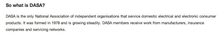DASA are aware that one of THEIR MEMBERS (0800 Repair) are advertising something that is misleading and cannot be guaranteed nor logistically possible (Due to a lack of Franchisees and needing to rely on non CRB Checked JTM Agents), but that’s ok. That’s morally fine? Yeah?