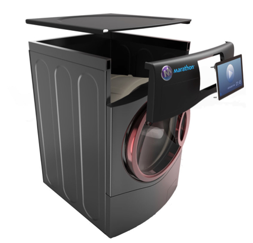 Marathon’s Wi-Fi connected washer dryer comes with a large (for a washer) touchscreen panel and a free smartphone app to act as a remote control. The machine has an A9 processor, 1GB of RAM, and an equal amount of storage. It was originally based on Android, but Reid chucked the OS because it “was more complicated than it needed to be.” The machine communicates with your phone and collects data about what you wash, when, and at what temperature.