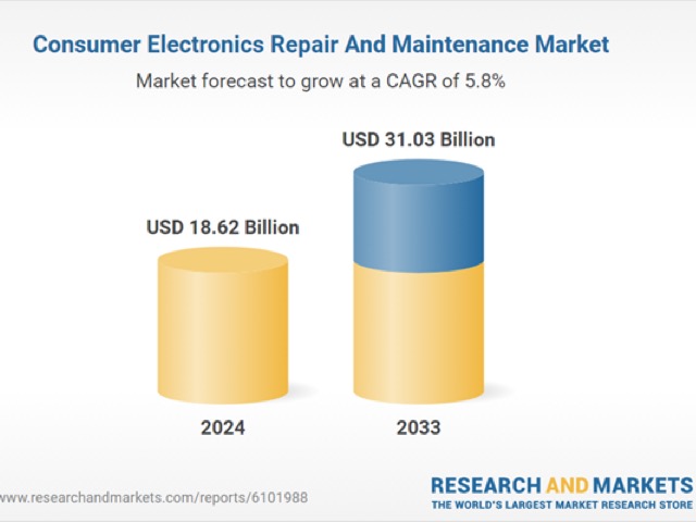 Dublin, July 24, 2025 (GLOBE NEWSWIRE) — The “Consumer Electronics Repair And Maintenance Market Size and Growth Trends and Forecast Report 2025-2033” report has been added to ResearchAndMarkets.com’s offering.